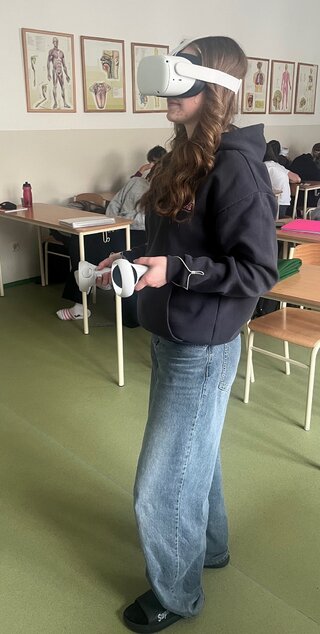 K dispozícii máme VR headsety, dotykové zobrazovacie zariadenie a licencovaný edukačný softvér na 3D výučbu anatómie. Odbornú prípravu a metodickú podporu pri zavádzaní VR do vyučovania zabezpečuje tím pedagógov školy v spolupráci s digitálnym koordinátorom, aby technológie prirodzene zapadli do hodín a mali pre žiakov reálny prínos.