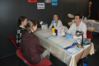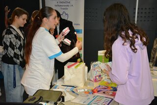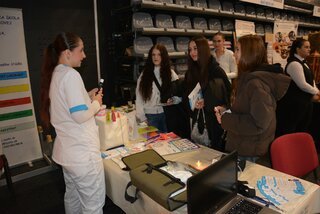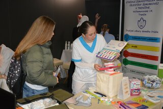 ktoré v Mestskej športovej hale Trenčín predstavilo ponuku stredných škôl v Trenčianskom kraji. Naši žiaci a pedagógovia prezentovali všetky študijné odbory – farmaceutický laborant, masér, praktická sestra, zdravotnícky laborant a zubný asistent.