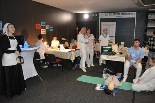 Návštevníci si mohli odmerať krvný tlak, vyskúšať si KPR, zistiť svoju krvnú skupinu, ochutnať bylinkové čaje, dozvedieť sa viac o dentálnom zdraví či dopriať si masáž chrbta a šije. Naši žiaci sa zapojili aj do sprievodného programu, kde svojím spevom a hrou na harmonike spríjemnili návštevníkom deň.