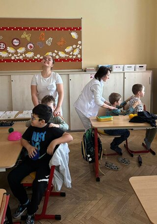 Aj tento rok sme prišli medzi deti do ZŠ - tentokrát do ZŠ v Bzinciach pod Javorinou - s naším preventívnym projektom Zdravý chrbát. Monika a Kika zo 4. MAS a Samuel z 3. MAS viedli edukáciu o tom, ako si už od útleho veku chrániť chrbticu.