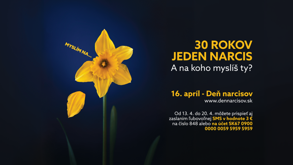 Liga proti rakovine pomáha na Slovensku ľuďom s rakovinou a ich blízkym už 36 rokov aj vďaka známej zbierke Deň narcisov, ktorá sa bude konať i prostredníctvom dobrovoľníkov z našej školy už tento štvrtok - 16. apríla. Ide o 30. ročník. V tento deň môžeme pripnutím kvietku narcisu vyjadriť spolupatričnosť onkologickým pacientom a dobrovoľným finančným príspevkom podporiť projekty, ktoré pre nich Liga bezplatne realizuje. Na Slovensku ročne pribúda približne 40 000 onkologických pacientov a takmer každý z nás pozná niekoho, koho zasiahlo toto náročné ochorenie.